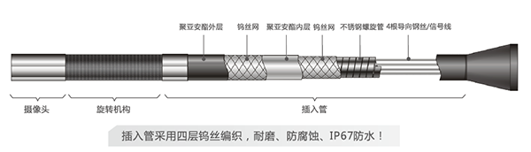 SIE-P便攜式工業內窺鏡插入管材質為四層鎢絲編織耐磨管,防水等級IP67