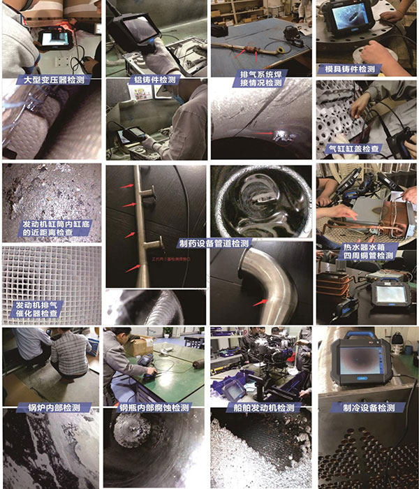 SIE-P系列手持式高清視頻內窺鏡可廣泛應用于航空、汽車、船舶、電氣、化學、電力等現代核心工業生產、檢修等多個環節。具有直接可視的特點,能夠直接觀測管道、渦輪、汽缸、發動機等大型裝置內表面是否存在缺陷或異狀。可進行實時拍照和視頻錄制,為分析設備使用狀況及設備生產保障提供不可或缺的數據采集。