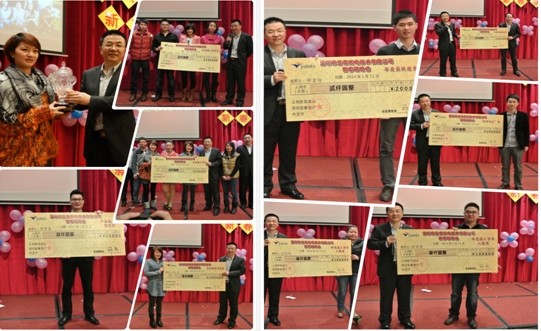本屆年會(huì)由總經(jīng)辦劉春龍負(fù)責(zé),各部門負(fù)責(zé)人做了關(guān)于2013年各部門工作總結(jié)報(bào)告以及2014年各部門工作規(guī)劃,接著公司總經(jīng)理鄭翔做了2013年工作總結(jié)報(bào)告,并對(duì)2014年公司發(fā)展做出了全面規(guī)劃。各部經(jīng)理宣讀了獲得2013年公司優(yōu)秀員工名單,并號(hào)召全公司同事向他們學(xué)習(xí)。隨后,總經(jīng)理親自為2013年對(duì)公司做出卓越貢獻(xiàn)的員工及團(tuán)隊(duì)頒發(fā)獎(jiǎng)金,已獎(jiǎng)勵(lì)他們過(guò)去一年的取得的成果 。 年會(huì)時(shí),同事們歡聚一堂,各種有趣的娛樂(lè)游戲?qū)⒛陼?huì)推向了高潮。