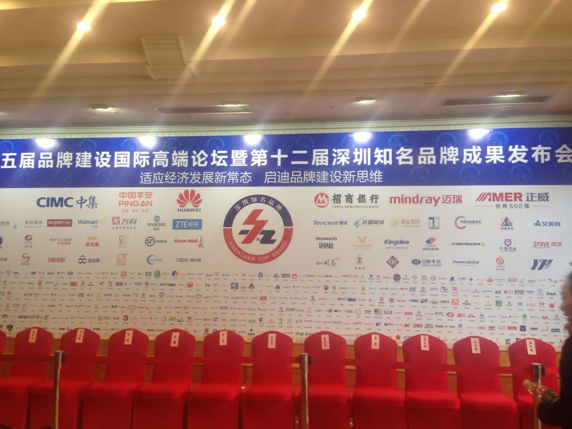 用產品贏得市場,以品牌塑造價值!2015年4月25日下午,第五屆品牌建設國際高端論壇暨第十二屆深圳知名品牌成果發布會,在深圳五洲賓館隆重舉行。來自國內外的品牌專家、深圳企業家代表以及政府部門領導等600余人齊聚一堂,共同見證頒獎儀式,探討在經濟發展新常態下啟迪品牌建設的新思維。