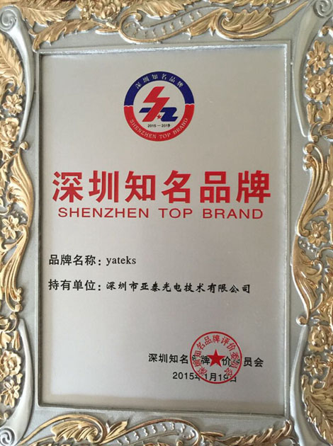第十二屆“深圳知名品牌”頒獎盛典 深圳市亞泰光電一枝獨秀