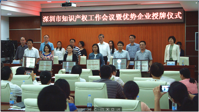 此次參會(huì)領(lǐng)導(dǎo)有深圳市市場(chǎng)監(jiān)督委員會(huì)常務(wù)副主任范鳴春、深圳市知識(shí)產(chǎn)權(quán)局副局長(zhǎng)秦世杰、深圳市知識(shí)產(chǎn)權(quán)局知識(shí)產(chǎn)權(quán)促進(jìn)處處長(zhǎng)陳民鋼、副處長(zhǎng)宋洋等。會(huì)議內(nèi)容包括2014年度知識(shí)產(chǎn)權(quán)優(yōu)勢(shì)企業(yè)授牌儀式、最新知識(shí)產(chǎn)權(quán)政策宣貫以及知識(shí)產(chǎn)權(quán)促進(jìn)工作部署等。會(huì)上,范主任做了重要講話,充分肯定了深圳市知識(shí)產(chǎn)權(quán)工作在過(guò)去30年取得的矚目成績(jī),2014年專利申請(qǐng)量連續(xù)四年全國(guó)第一,PCT申請(qǐng)量占全國(guó)一半;發(fā)明專利擁有量75件/萬(wàn)人,是全國(guó)平均水平的15倍以上;90%以上的研發(fā)機(jī)構(gòu)、研發(fā)人員、研發(fā)投入、研發(fā)成果均來(lái)自企業(yè)。未來(lái)“十三五”規(guī)劃中,深圳市將在知識(shí)產(chǎn)權(quán)保護(hù)、運(yùn)營(yíng)以及人才培養(yǎng)方面繼續(xù)推出新政策,將深圳打造為國(guó)際型創(chuàng)新城市“中國(guó)硅谷”。同時(shí)也指出了深圳市知識(shí)產(chǎn)權(quán)工作的不足:知識(shí)產(chǎn)權(quán)分布結(jié)構(gòu)不均衡,與發(fā)達(dá)國(guó)家發(fā)達(dá)城市依然存在差距等。