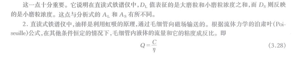 3、 油樣和其中的固態磨粒同時通過的是管狀的而不是開放的通道,實驗觀測表明,這種流動方式會對固體顆粒產生一種“徑向遷移”效應。由于這種效應的存在,油樣中那些密度與液體相差不大的污染物顆粒會在毛細管中形成以管中心軸為圓心的環形分布而被沖出沉積管,那些密度大于油液的如銅、鋁有色金屬顆粒,除了其中有的因與鋼對磨發生金屬轉移后,增加了磁性而被磁場吸留在沉積管內之外,大部分也由于此效應集中在油流流速最高的沉積管中心而軸附近而被油流沖出沉積管,因此,直讀式鐵譜儀幾乎不能沉積下非鐵磁性磨粒,它只對鐵磁性磨粒具有較高的靈敏度,大量的統計性實驗也表明:直讀式鐵譜讀數與光譜分析的鐵含量測量值其趨勢有著較好的吻合。