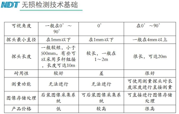 目視檢測儀器種類眾多,工業內窺鏡是其中之一,工業內窺鏡是集光、機、電一體的NDT儀器,根據制造工藝分為三類:硬性內窺鏡、纖維內窺鏡、電子視頻內窺鏡