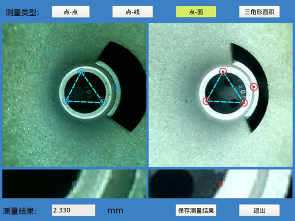 三維測量系統,可通過點到點,點到線、點到面、面積測量等方式精準測量缺陷的尺寸。