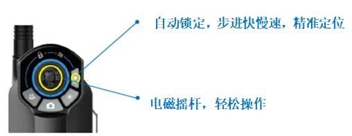 (1)自動鎖定、精準定位:探頭在任意彎曲狀態下,只需保持3秒,即可自動鎖定;鎖定后開啟微調功能,再操作搖桿時探頭將以鎖定的軸心進行小幅度轉動;