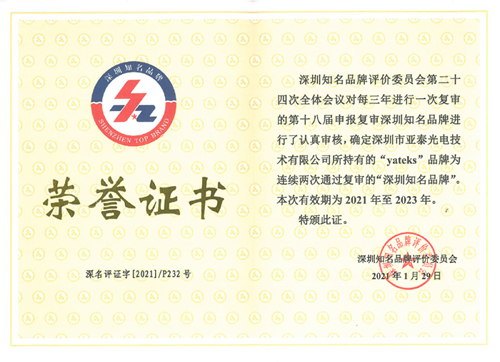 隨后,羅琪琳部長(zhǎng)將標(biāo)志著中國(guó)優(yōu)質(zhì)品牌符號(hào)的“深圳知名品牌”證書及牌匾交到了市場(chǎng)相關(guān)負(fù)責(zé)人手上,這份承載著評(píng)委會(huì)對(duì)亞泰光電產(chǎn)品和服務(wù)質(zhì)量水平充分肯定,與社會(huì)公眾對(duì)于亞泰光電品牌發(fā)展認(rèn)可和期許的榮譽(yù),將更加促進(jìn)亞泰光電的發(fā)展進(jìn)程和管理水平上升到更高、更新的臺(tái)階。