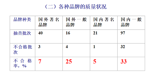 (二)各種品牌的質量狀況