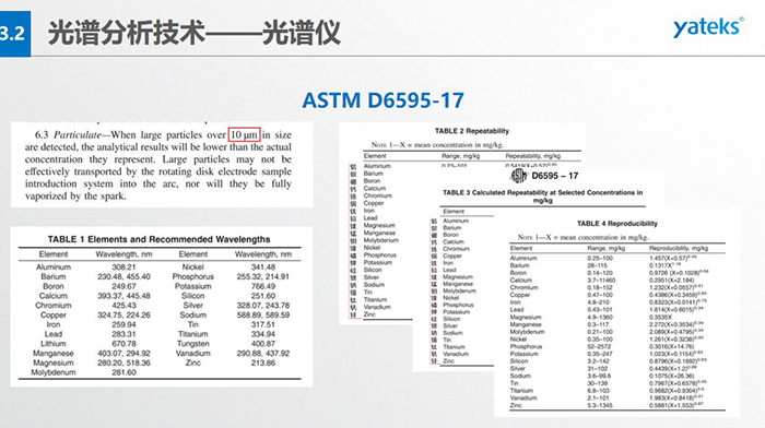 ASTM D6595使用旋轉(zhuǎn)圓盤電極原子發(fā)射光譜法測(cè)定在用潤(rùn)滑油或液壓油中磨損金屬和污染物的標(biāo)準(zhǔn)試驗(yàn)方法----美國(guó)材料試驗(yàn)協(xié)會(huì)。   ASTM D6728 使用旋轉(zhuǎn)圓盤電極原子發(fā)射光譜法測(cè)定燃?xì)鈾C(jī)和柴油機(jī)燃料中污染物的標(biāo)準(zhǔn)試驗(yàn)方法----美國(guó)材料試驗(yàn)協(xié)會(huì)。   NB/SH/T 0865-2013在用潤(rùn)滑油中磨損金屬和污染物元素測(cè)定旋轉(zhuǎn)圓盤電極原子發(fā)射光譜法----國(guó)家能源局。   DL/ T 1550-2016礦物絕緣油中金屬銅、鐵含量測(cè)定法旋轉(zhuǎn)圓盤電極發(fā)射光譜法----國(guó)家能源局。