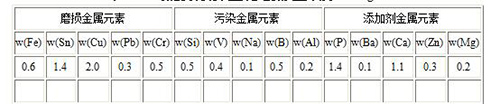 8月,南方某電廠2號燃機由于振動值偏高,對油箱底部滑油進行了光譜分析,具體數據如表1。