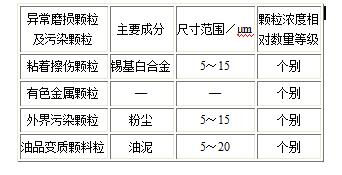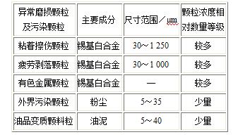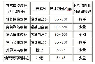 表2 油箱底部潤滑油磨損顆粒和污染雜質特性