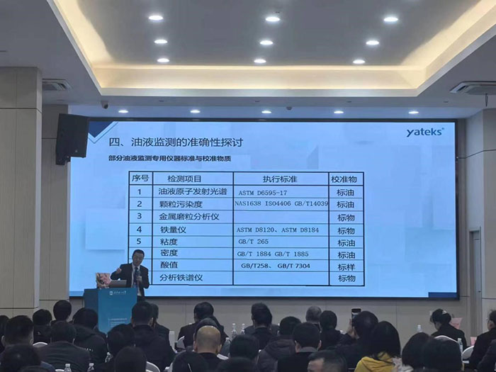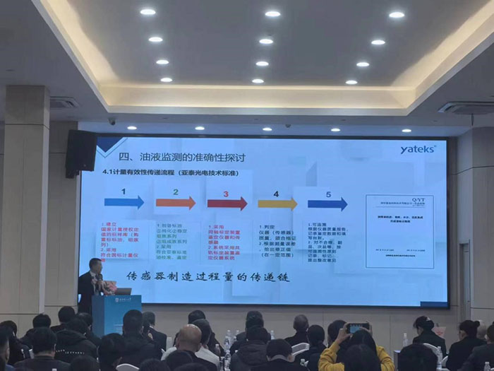 此次會議通過專題報告,如油液傳感器應(yīng)用實踐、油品分析儀研發(fā)、油液監(jiān)測大數(shù)據(jù)、設(shè)備潤滑等不同領(lǐng)域維度和技術(shù)交流以及參觀學(xué)習的形式舉行,深圳市亞泰光電技術(shù)有限公司鄭總在會上做了油液監(jiān)測的準確性探討的專題報告,報告從金屬磨粒分析儀、原子發(fā)射光譜、顆粒污染度等部分油液監(jiān)測專用儀器標準與校準物質(zhì);油液傳感器計量有效性傳遞流程等維度做了闡述。