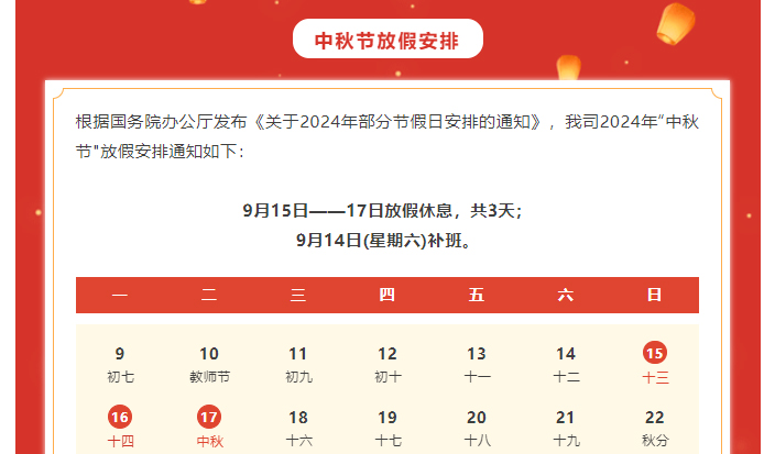 中秋朤朤 —— 中秋節(jié)放假通知