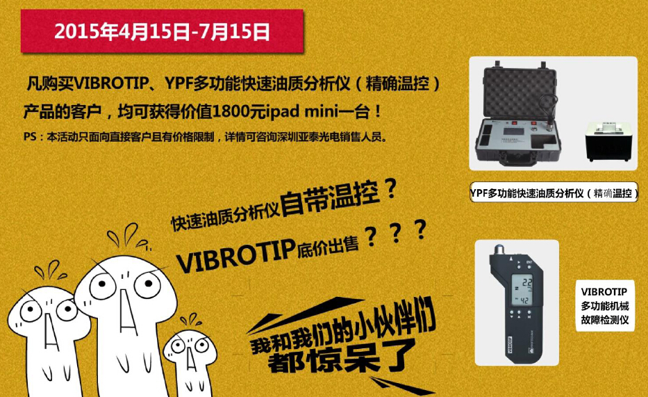 為慶祝亞泰光電自主研發(fā)的帶“精確溫控”功能快速油質(zhì)分析儀成功問世, 自2015年4月15日起,特進(jìn)行為期三個(gè)月的“以舊換新、免費(fèi)試用”活動(dòng)。