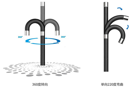4、靈敏的轉(zhuǎn)向功能——電動(dòng)360°轉(zhuǎn)向功能,單向最大220°彎曲。
